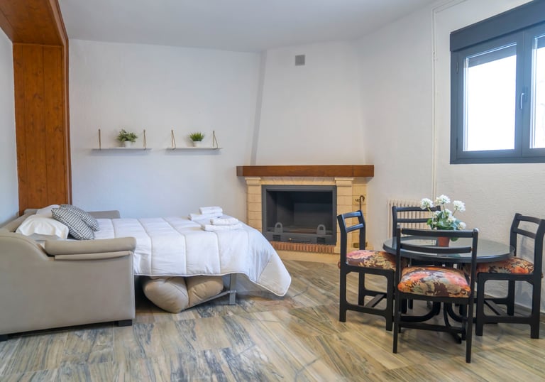 This rural house, like the rest of the estate, shares access to the outdoor areas, which include a saltwater pool, a barbecue, spacious corners where children can play freely, nature in every direction, and a deep sense of peace.